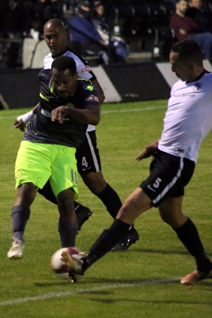 After McGovern unsuccessfully shot from 18-yards for the Steelmen, as Gyasi continued to tease the home side’s defence, Corby’s frustration boiled over. Captain Kernm Miller forcefully body-checked Gyasi, resulting in the game’s first, and last, booking.
