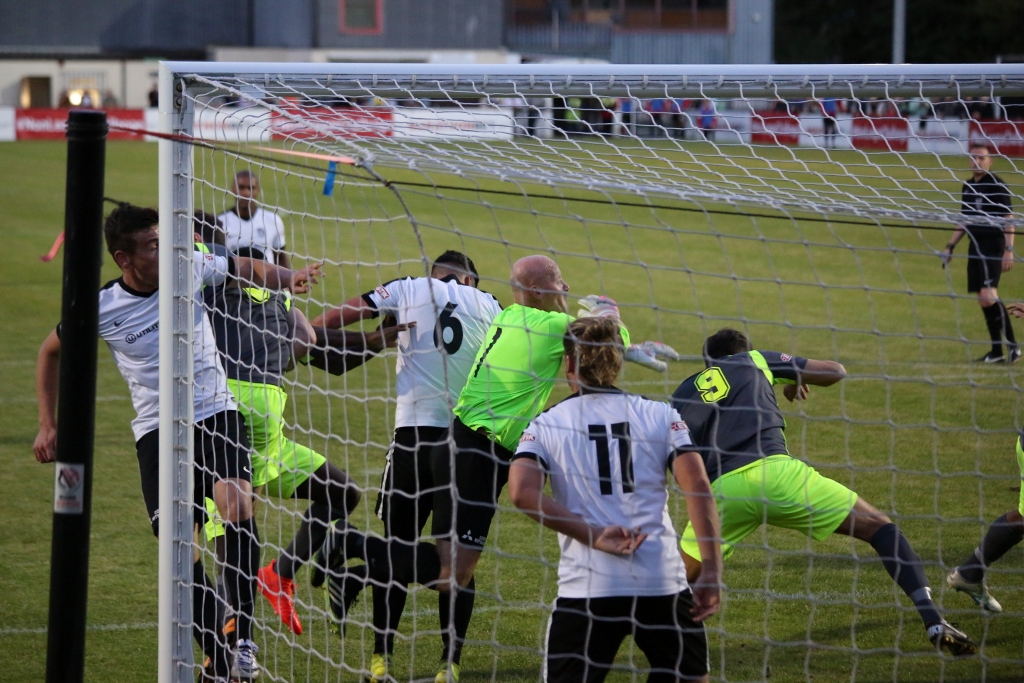 The ball nestled in the Corby net again a minute afterwards as the resulting corner was headed down and thumped through the posts, but the referee pulled play back for a foul on Bastock in a crowded penalty area.