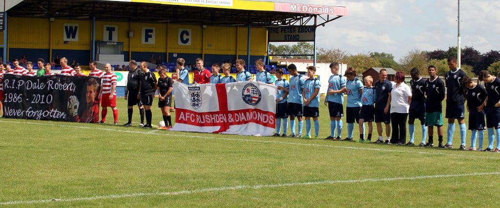 AFC Rushden & Diamonds recorded their first victory in the annual Dale Roberts Memorial Cup, as Dale’s first and last clubs met for the third time to honour the popular late goalkeeper.