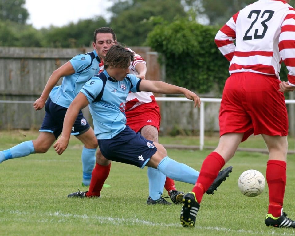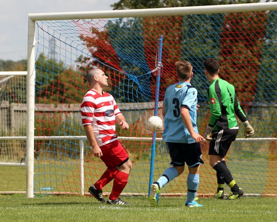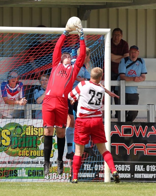 With 21 minutes gone the hosts came close to a third goal when Luke Fathers’ left wing free kick cannoned back off the crossbar, with Jake Reynolds unable to find the target with the rebound. The visitors then had a good spell of pressure, forcing Rushden ‘keeper Connor Brown into two good saves with shots from the edge of the box.