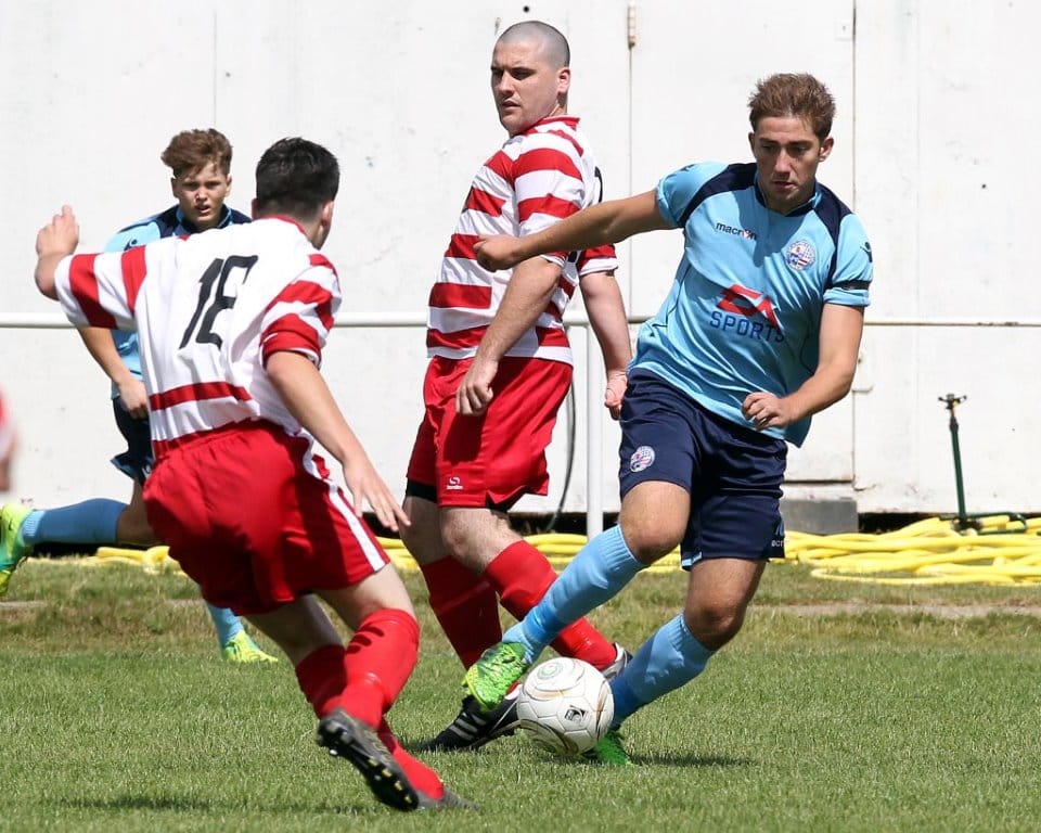 On a glorious July afternoon, following the now traditional minute’s applause, the new-look Diamonds side started the game strongly, passing the ball around comfortably, and they opened the scoring on 10 minutes when a good move down the right wing saw Omar Ghavami’s cross turned in by a Cleveland defender for an own goal. The good start got even better just two minutes later, as a defence splitting pass from midfield found Tommy Messinger cutting in from the left flank, reaching the ball just ahead of the onrushing Cleveland goalkeeper, who clipped Messinger just inside the box, with the referee showing no hesitation in pointing to the spot. James Mann stepped up and coolly slotted the ball into the bottom corner, giving Jack Smith no chance.