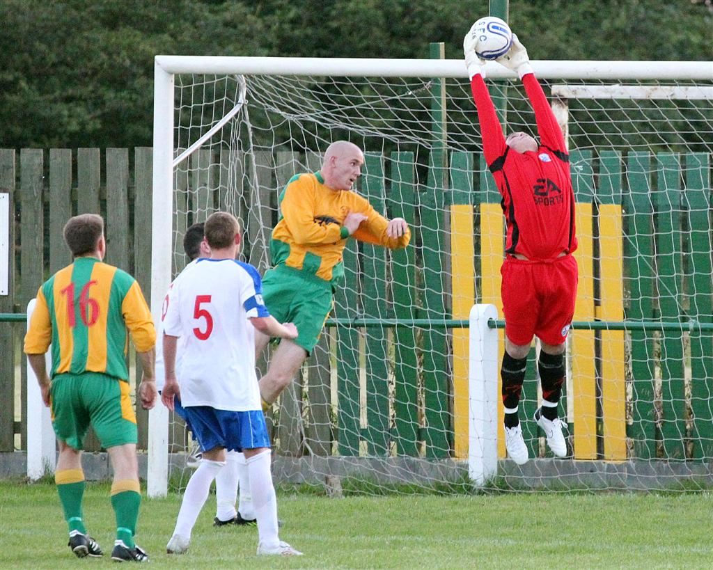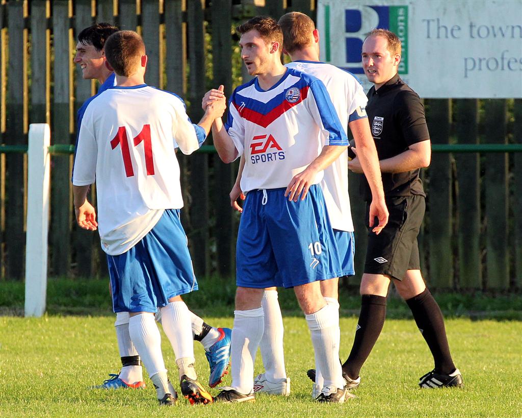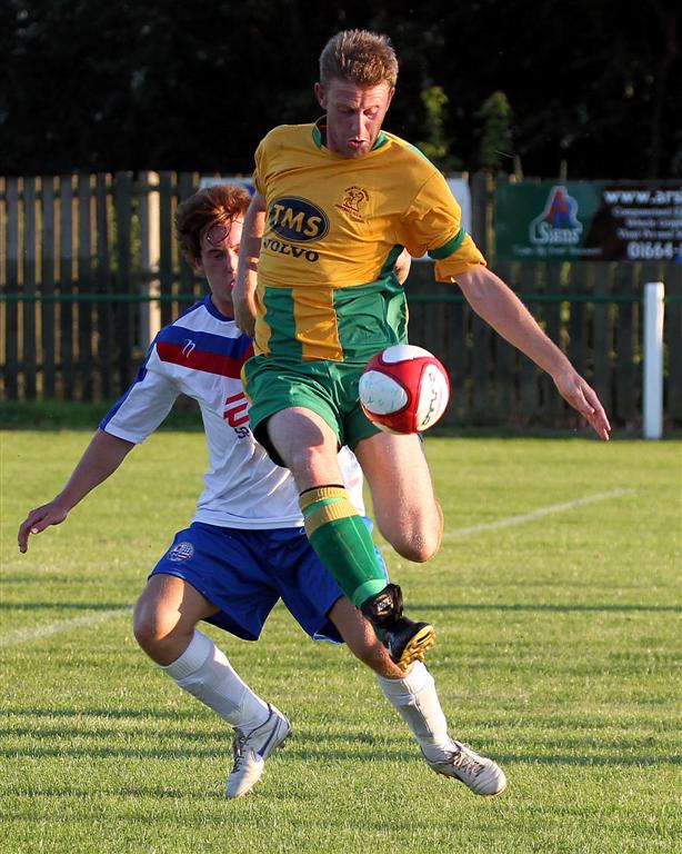 The Diamonds’ front two of Ben Morgan and Alfie Taylor were quickly developing a good understanding, and on 13 minutes Morgan played in his strike partner with an excellent through ball, but Taylor’s shot from the right hand side of the area was well saved by Richard Cragg in the home goal.