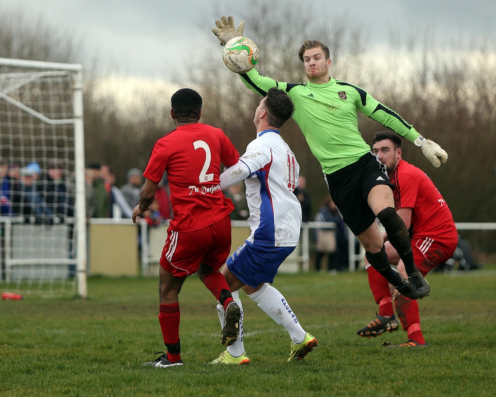Huntingdon were quick on the break at times and fashioned a good shooting chance for goal scorer Colmer who cut inside from the left wing and fired in a shot that Matt Finlay held comfortably.