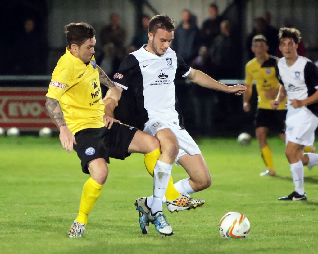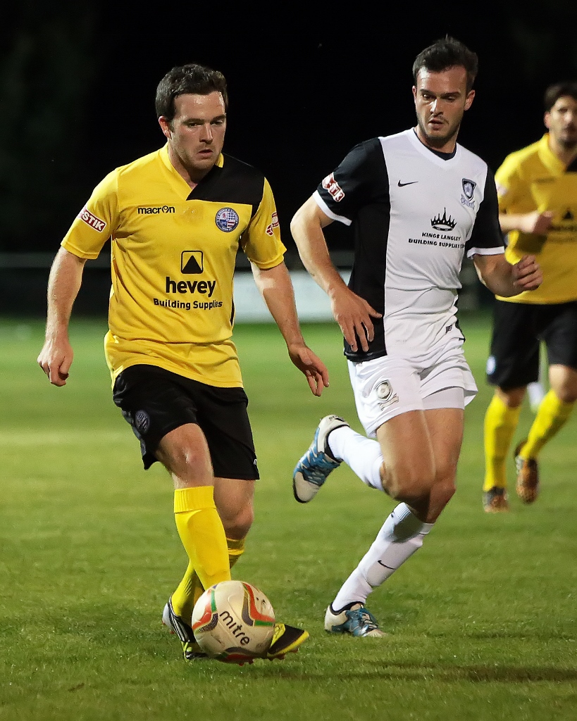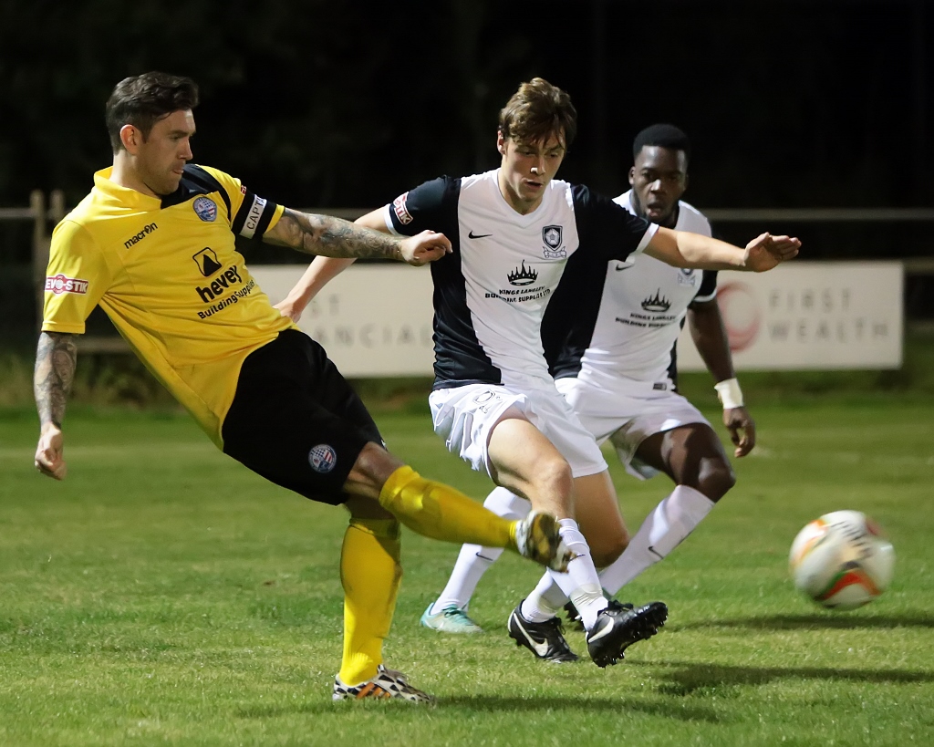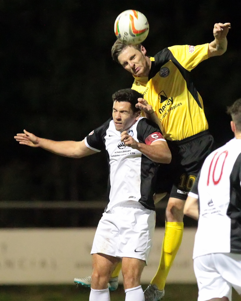 Sam Brown was prominent down the left and got past his man on 55 and hit a dangerous cross that was just cleared at full stretch by Kings Langley with Tom Lorraine closing in, and Richard Bunting surged onto a bouncing ball to fire a volley over the bar from 25 yards at the end of a good right wing move.