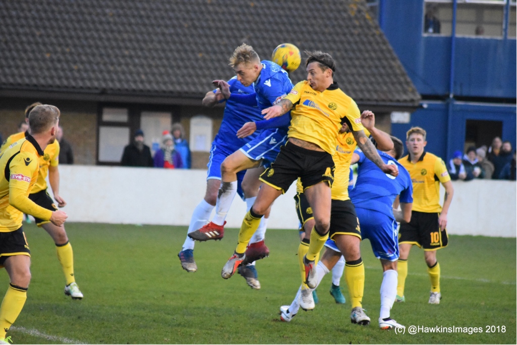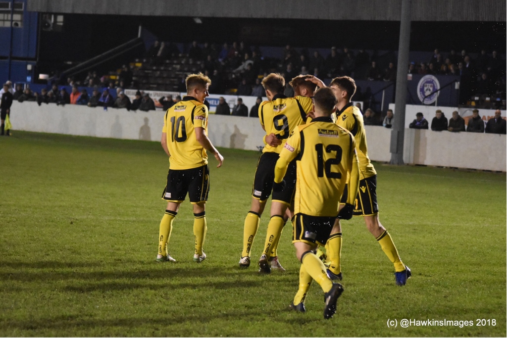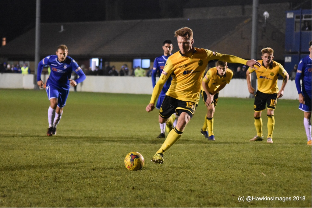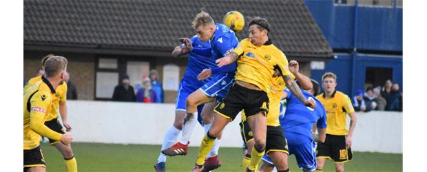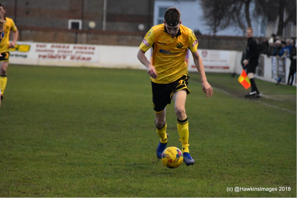 The hosts were enjoying more of the early possession, and in the 14th minute it looked like they had taken the lead. Full-back Jack Wilkinson delivered a deep and dangerous cross from the left that found tall striker Shaun Bammant at the far post, and he outjumped Liam Dolman to bury a header into the far corner of the net. However, the linesman’s flag had been raised for offside, and so the effort was ruled out.