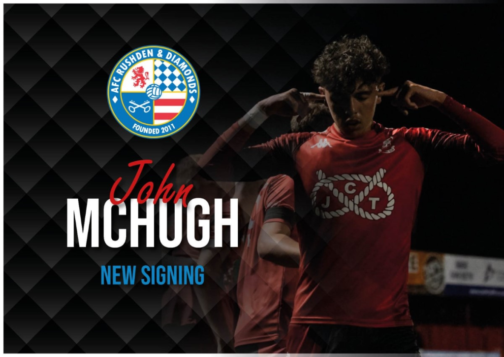 AFC Rushden & Diamonds are delighted to announce the signing of 18-year-old wide player John McHugh ahead of tomorrow’s fixture against Kidsgrove Athletic in the FA Trophy.
