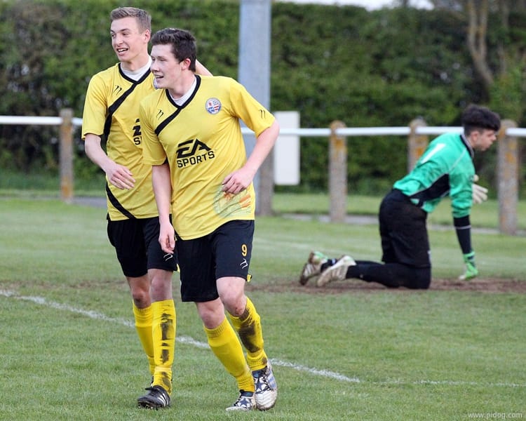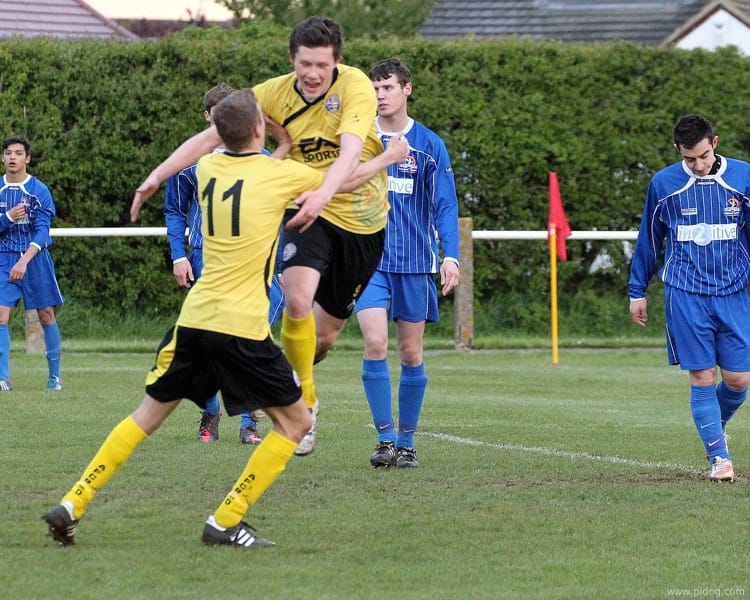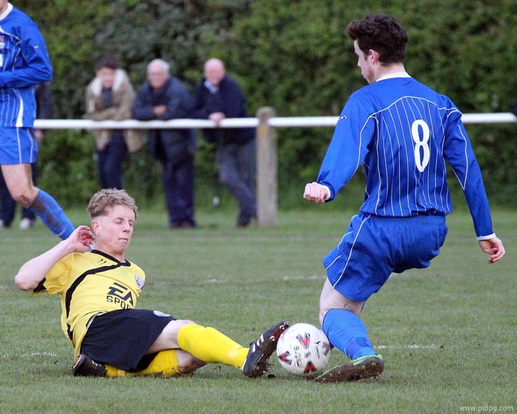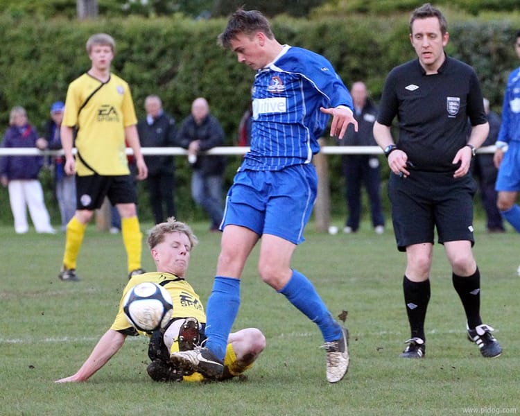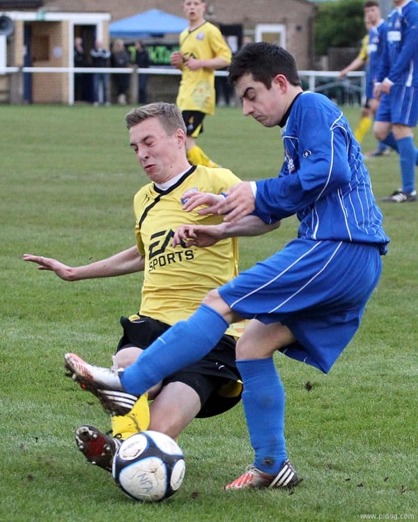 There were chances for the Diamonds to further reduce the arrears, as a goalmouth scramble saw the ball forced just wide of the post, before a Bell header from a Helsdown free kick went narrowly over the bar. But it wasn’t to be, and Yaxley held on the take the NSYL Championship title.