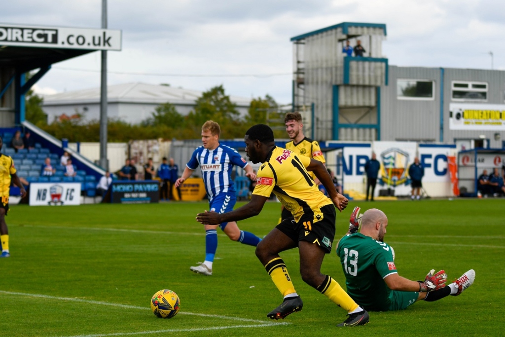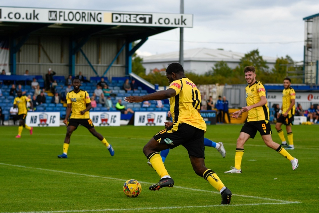 The hosts dominated possession early on but, aside from one right-wing cross that was confidently claimed by Dean Snedker, they weren’t able to threaten the away goal. It was Rushden who had the first chance of the game when Ben Garwood whipped in an inviting cross that found Nathan Tshikuna, but his header was deflected through to home keeper Tony Breeden.