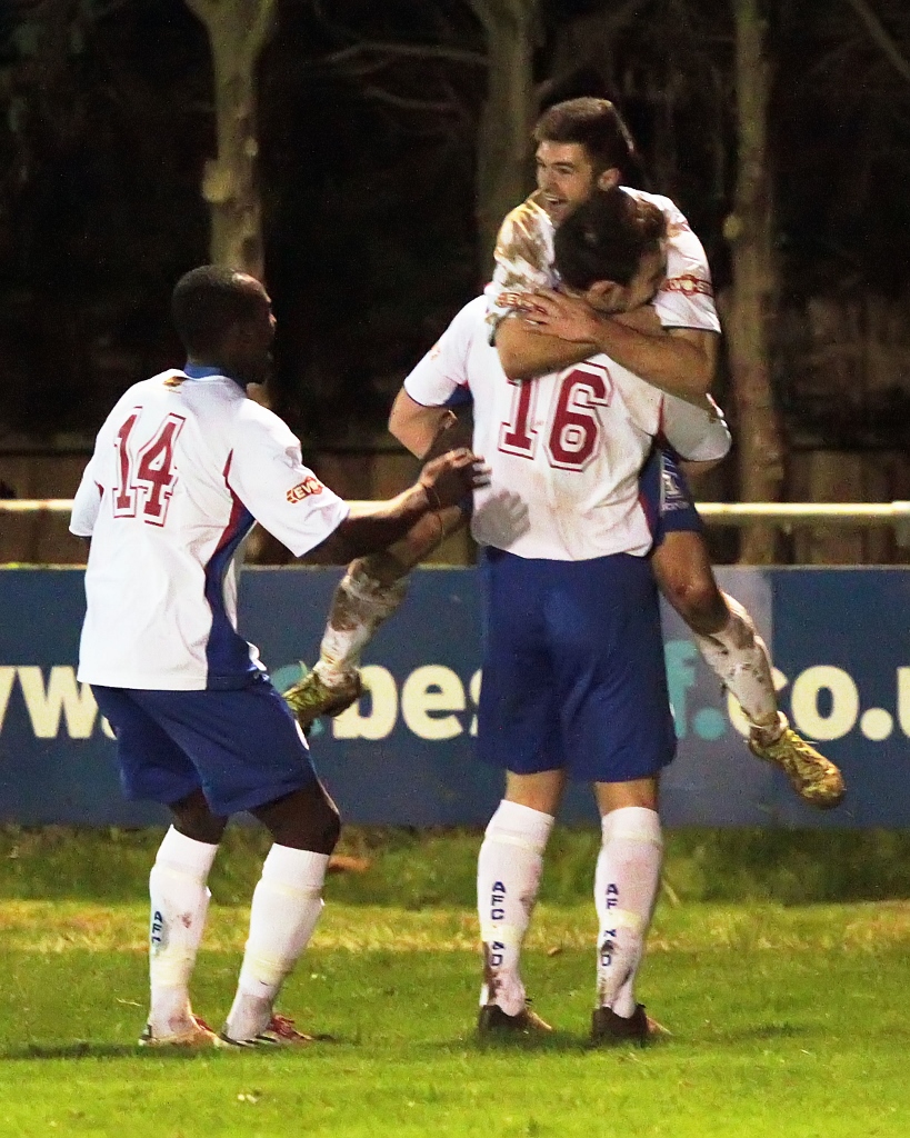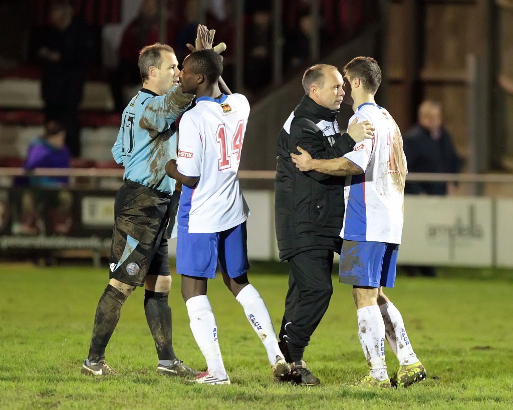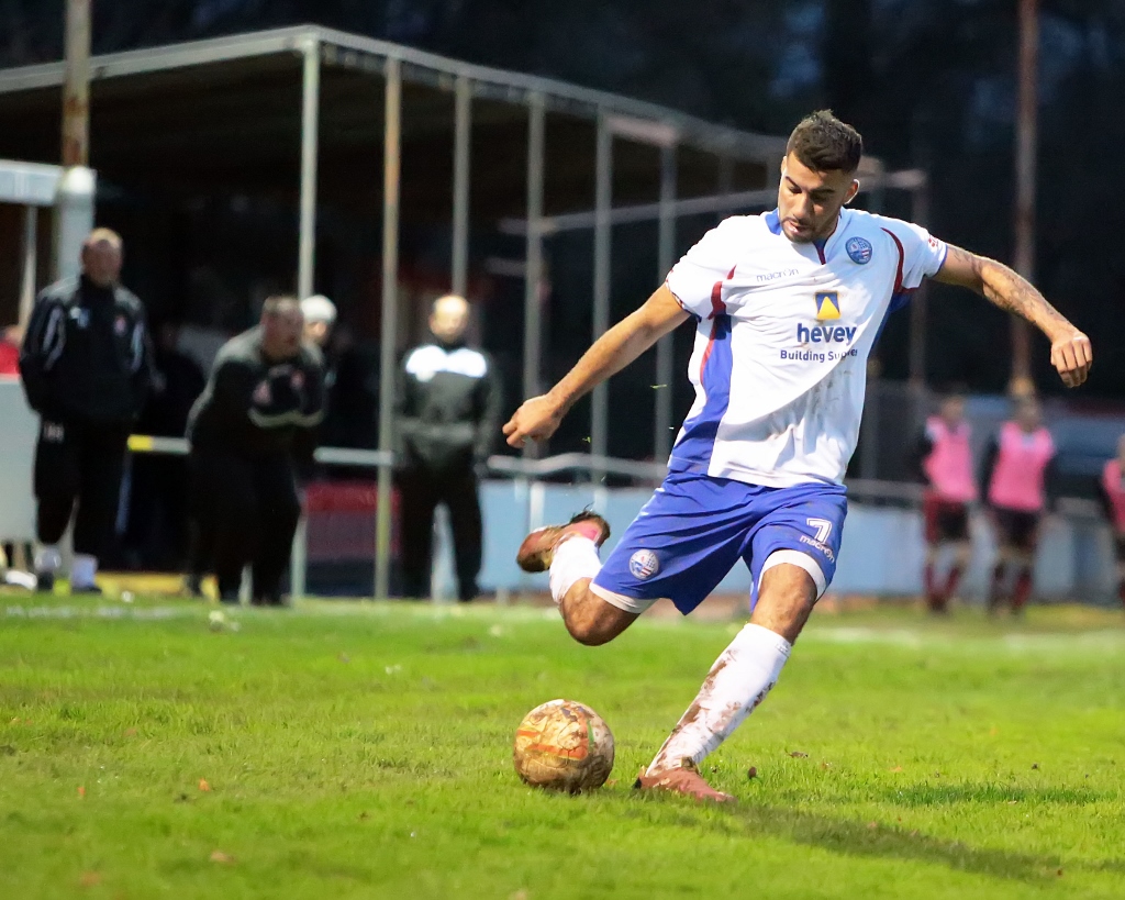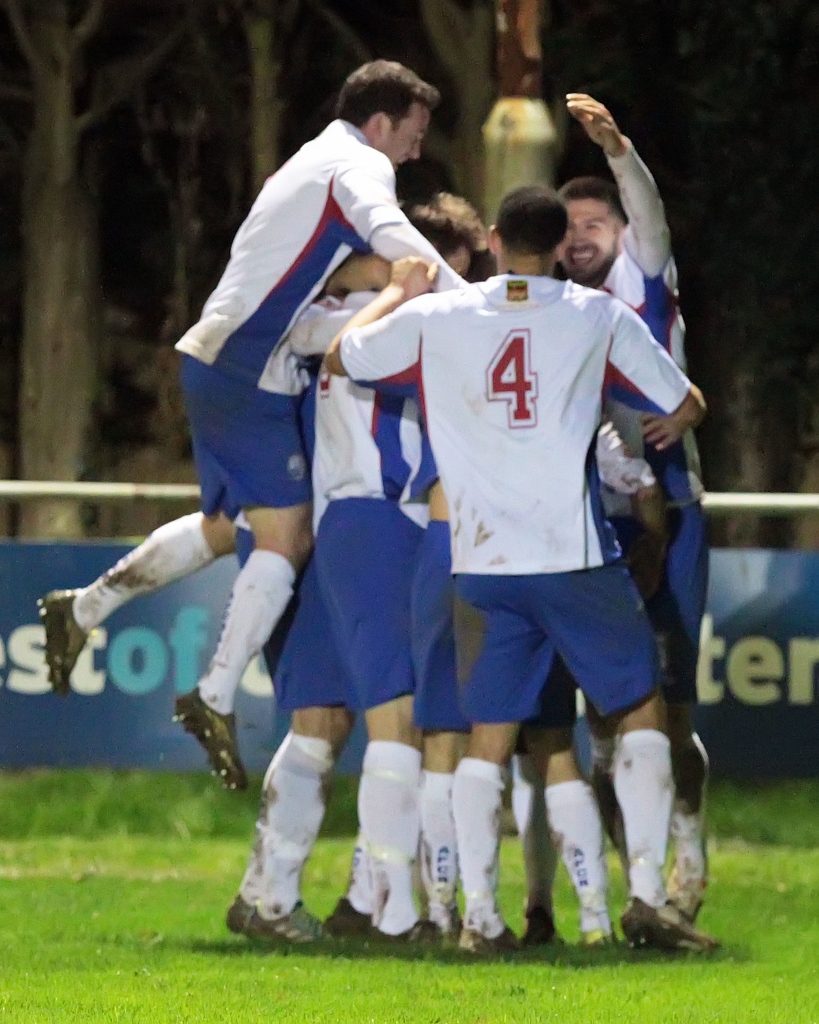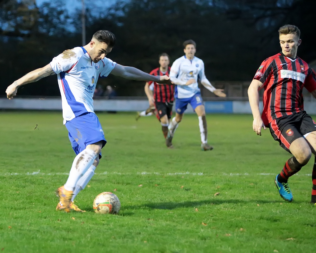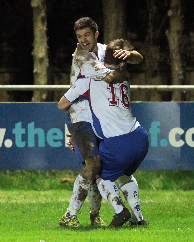 Just as it looked like it wouldn’t come another quick break saw Richard Bunting felled on the edge of the area on 87. He swung in the cross which was stabbed towards goal but only half cleared to the edge of the box. The right man was there to collect the ball for Diamonds in Claudio Hoban who took a good first touch and then fired in a blistering effort into the bottom corner to the absolute delight of his team mates and the dancing fans who had travelled down to blustery Hampshire.
