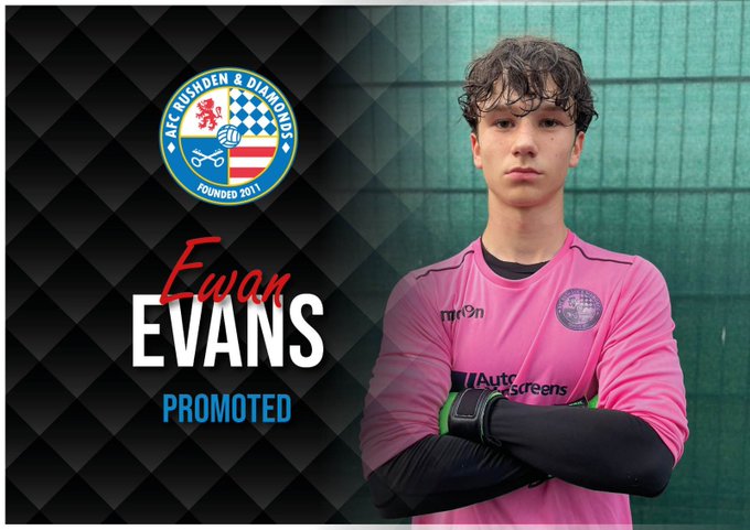 AFC Rushden & Diamonds are pleased to announce that 16-year-old goalkeeper Ewan Evans has signed first team forms ahead of the 2024-25 season. Ewan has progressed through the Club’s Academy pathway and has been with AFC Rushden & Diamonds since the age of 10.