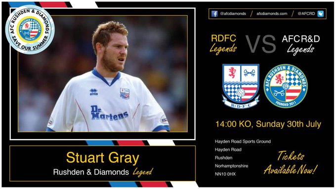 With 145 appearances, 15 goals and 2 league winner’s medals, Stuart Gray is an RDFC Legend!