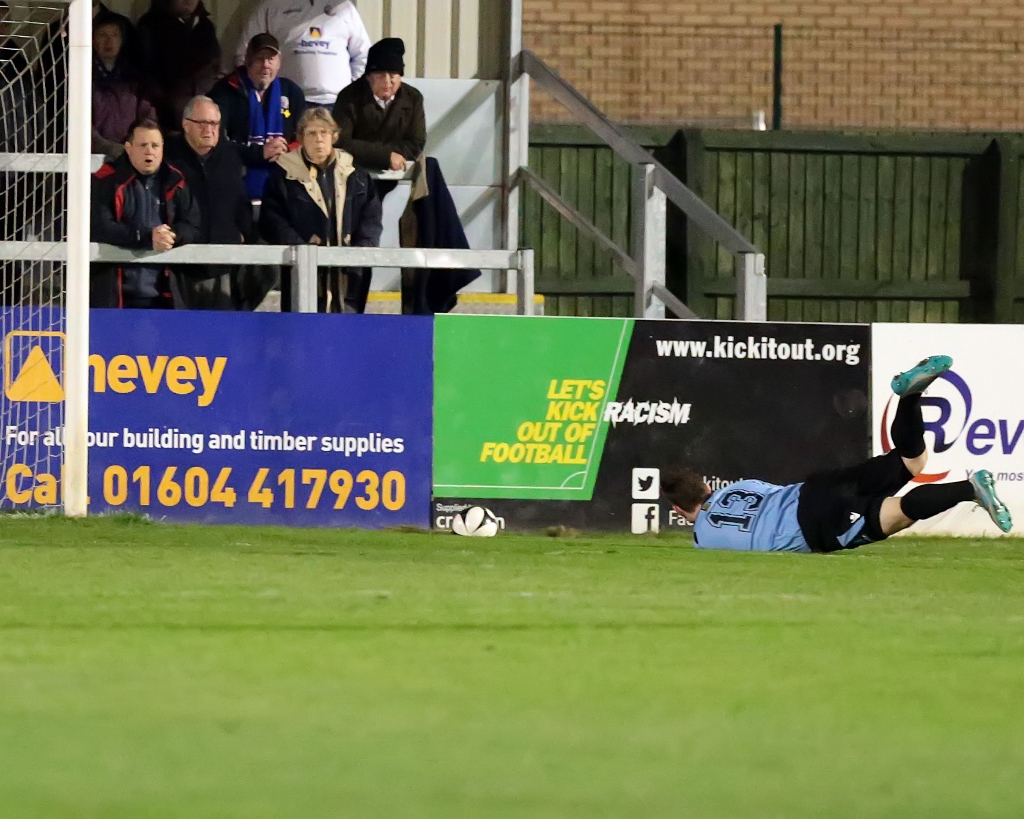 Histon made three substitutions around this point and it seemed to galvanise them and they got back to some slick passing and got some impetus back into their game. Impressive substitute Clayton fired an incredible effort from 40 yards that smacked off the bar and bounced down and away to safety on 60, Tilney had a low shot well saved by Alex Vitue low down at his near post on 64, and the vital 3rd goal then came on 70 minutes.