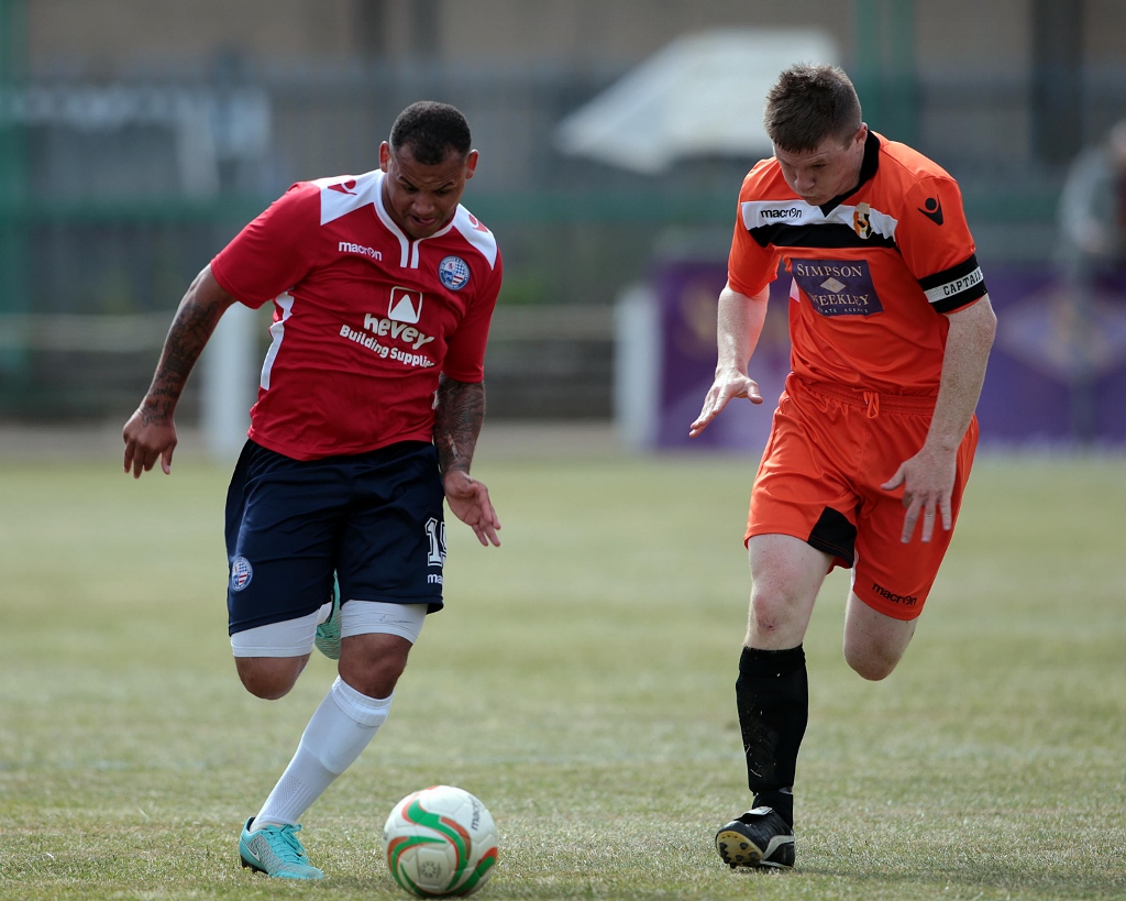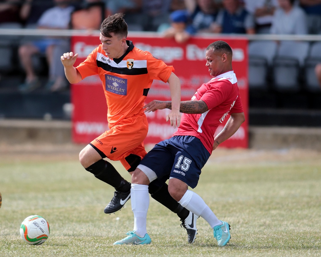 Manager Andy Peaks selected two of his new signings in the starting line-up with Ollie Wilkinson lining up at right back alongside Jack Ashton, Brad Harris and Sam Brown at the back. Dan Quigley lined up alongside Richard Bunting in centre midfield with Elliot Lamb-Johnson and a trialist confirmed as ex Kings Lynn man Steve Spriggs out wide. Tommy Berwick joined Tom Lorraine up front.