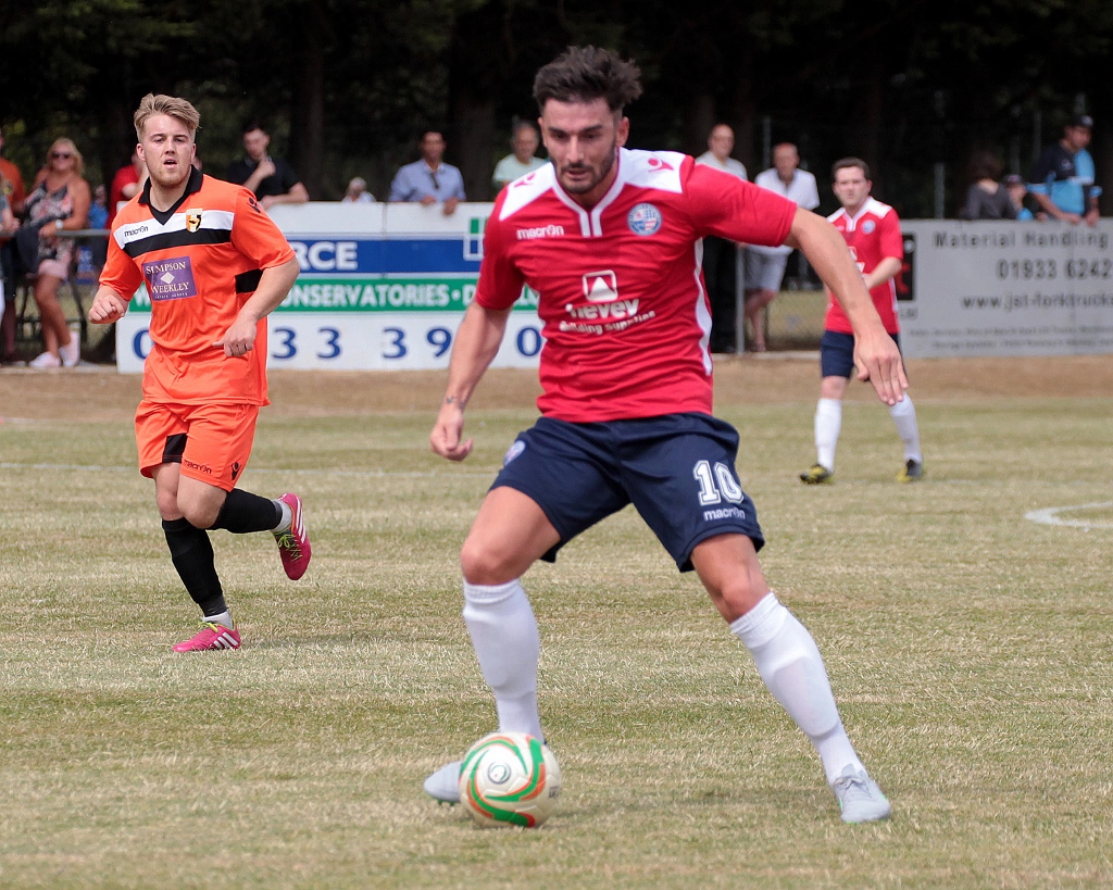 Diamonds started brightly with Sam Brown firing wide from just inside the box on 3 minutes after a neat one two with Tom Lorraine. Dan Quigley was keen to get on the ball and looking to slide passes through a packed Rushden and Higham defence, and Steve Spriggs looked good in possession out wide firing in a pair of dangerous crosses and two free-kicks that forced good catches from the home keeper.