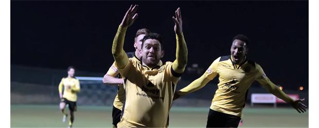 Perhaps a team that hadn’t had the impressive league run of the Diamonds, with their catalogue of recovery performances against the top teams on the road, might not have been able to recover from such a blow, but there was no sign of panic, and within five minutes they were level. A high ball into the area saw Tom Lorraine jump for the ball with home keeper Stewart, and after falling loose it was only half-cleared as far as Richard Bunting. He hit his shot well, but it had the benefit of a deflection as it powered into the back of the net. Bunting seems to relish scoring against the top teams on the road, and the Diamonds were able to celebrate their goal as the hosts had done five minutes earlier.