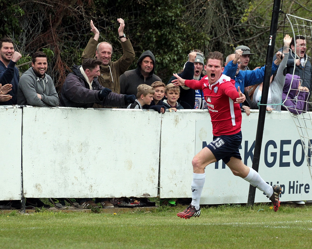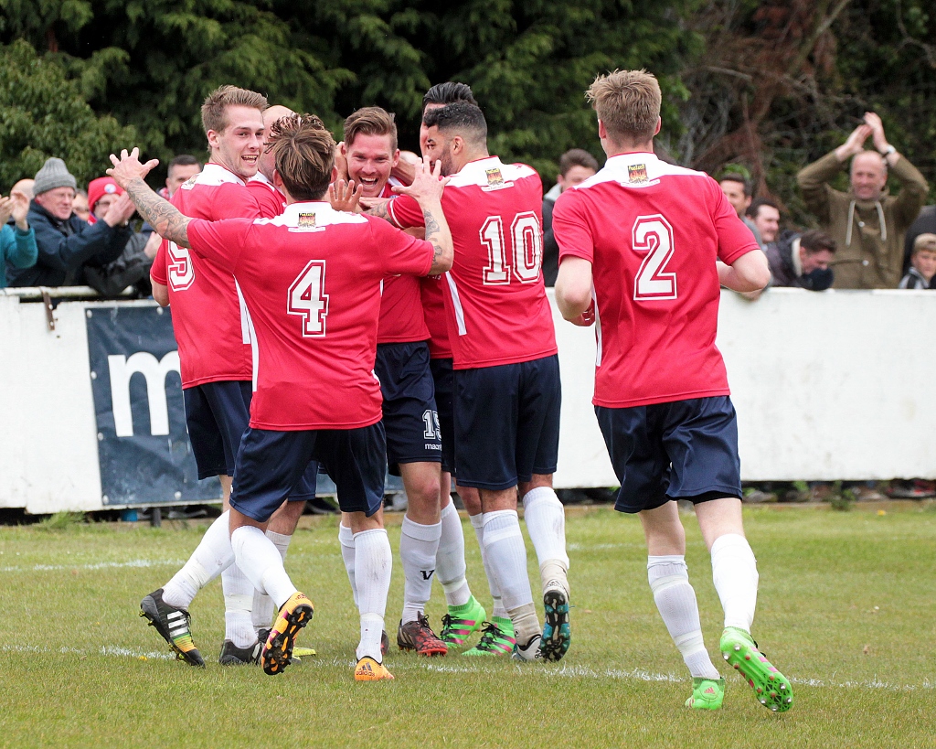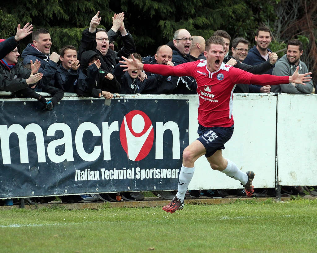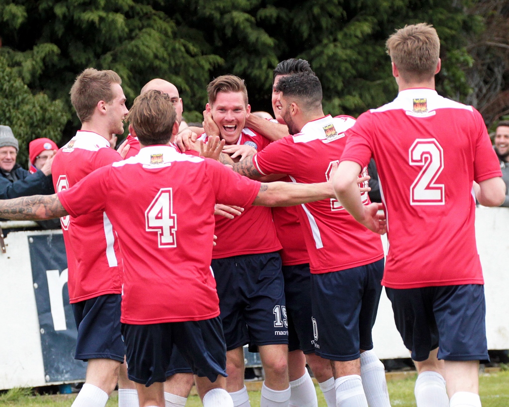 And seconds later Diamonds had the lead. Richards trotted over to take the left-wing corner, and he curled in an inviting delivery that found substitute Elliot Sandy alone in the middle of the six-yard box. He leapt like a proverbial salmon to bullet a header into the corner of the goal, and the scenes of ecstatic celebration that greeted the goal from all Diamonds’ players, fans and staff alike were picturesque and highly memorable.