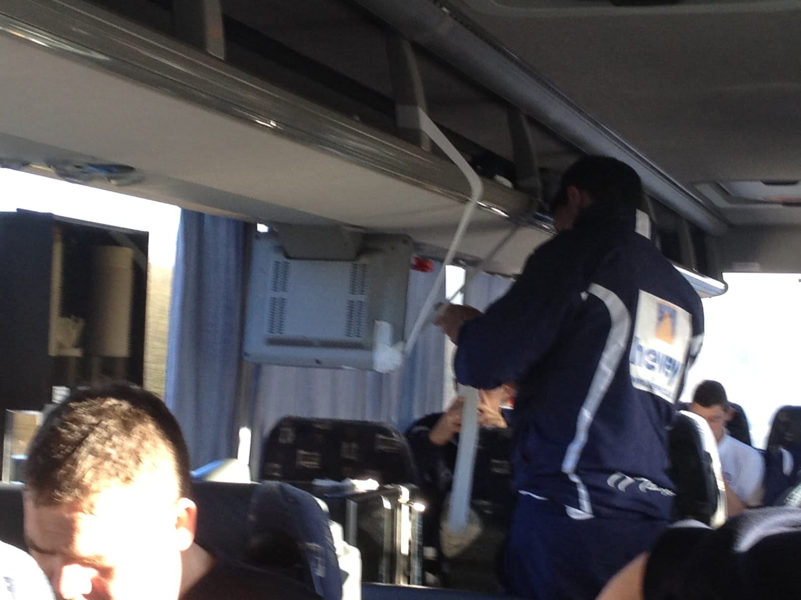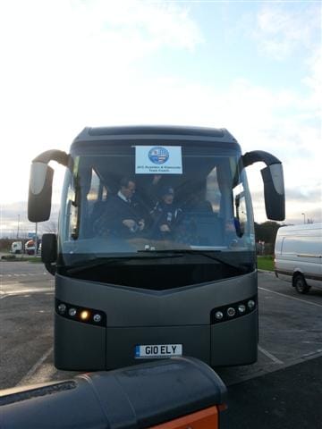 11:30am – Players are all at the ground in their tracksuits, barring a couple who are going to meet us in the North East. Coach has just arrived.