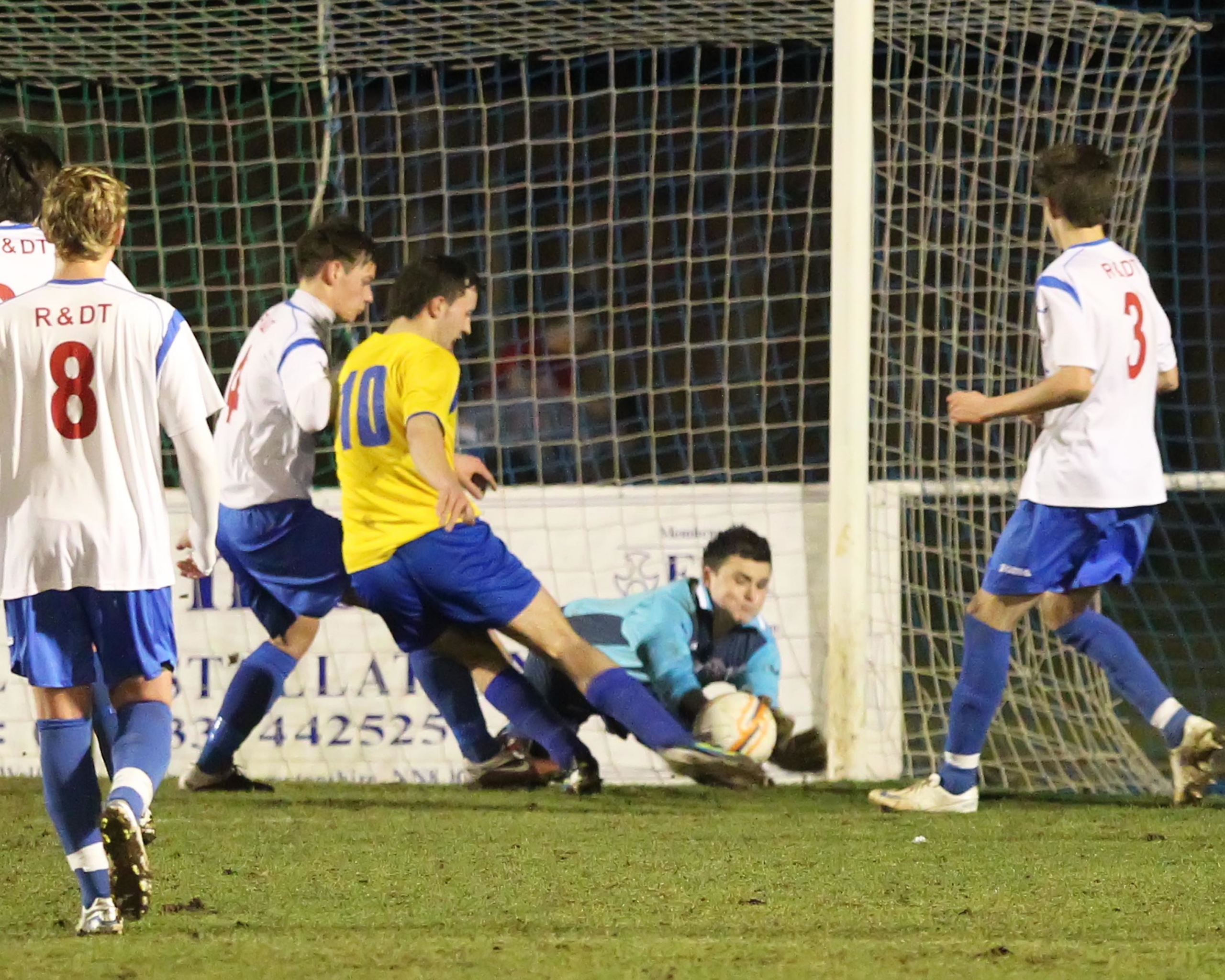 A minute later Foulger had to be at his best to keep out a 20 yard strike from Richardson, after he had turned well just outside the penalty area. From the resulting corner Jamie O’Keefe headed just over. Richardson kept up his impressive first half performance with a great run past Zach Farden and Ben Roche, but was denied once more by Foulger who smothered the ball bravely at his feet.