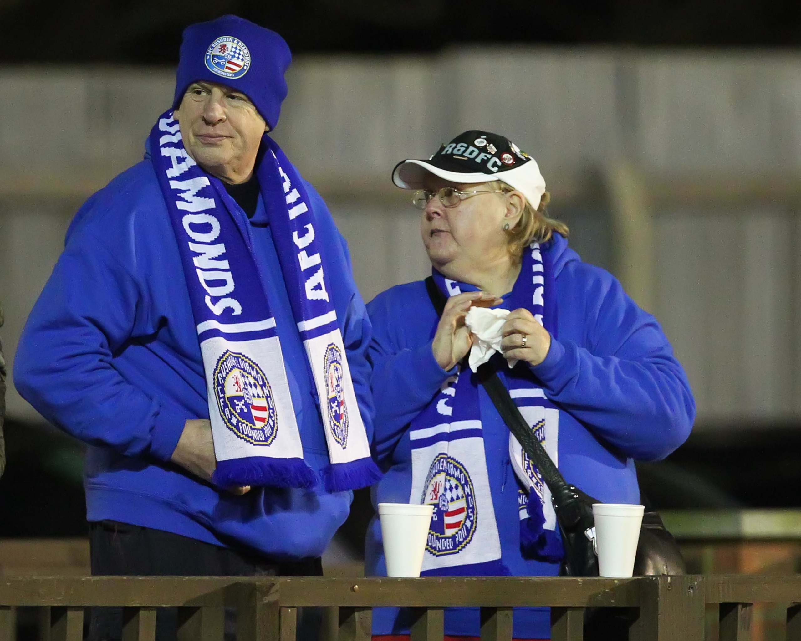 On 70 minutes the Diamonds had a great chance to get back in the game. Rust was fouled on the right flank, 35 yards from goal, and Fred Devereaux’s excellent delivery found the head of Roche, but he could only glance the ball wide of the post. Roche soon made amends for the missed chance however, clearing the ball off the line after John Lucas’ header had beaten Foulger.