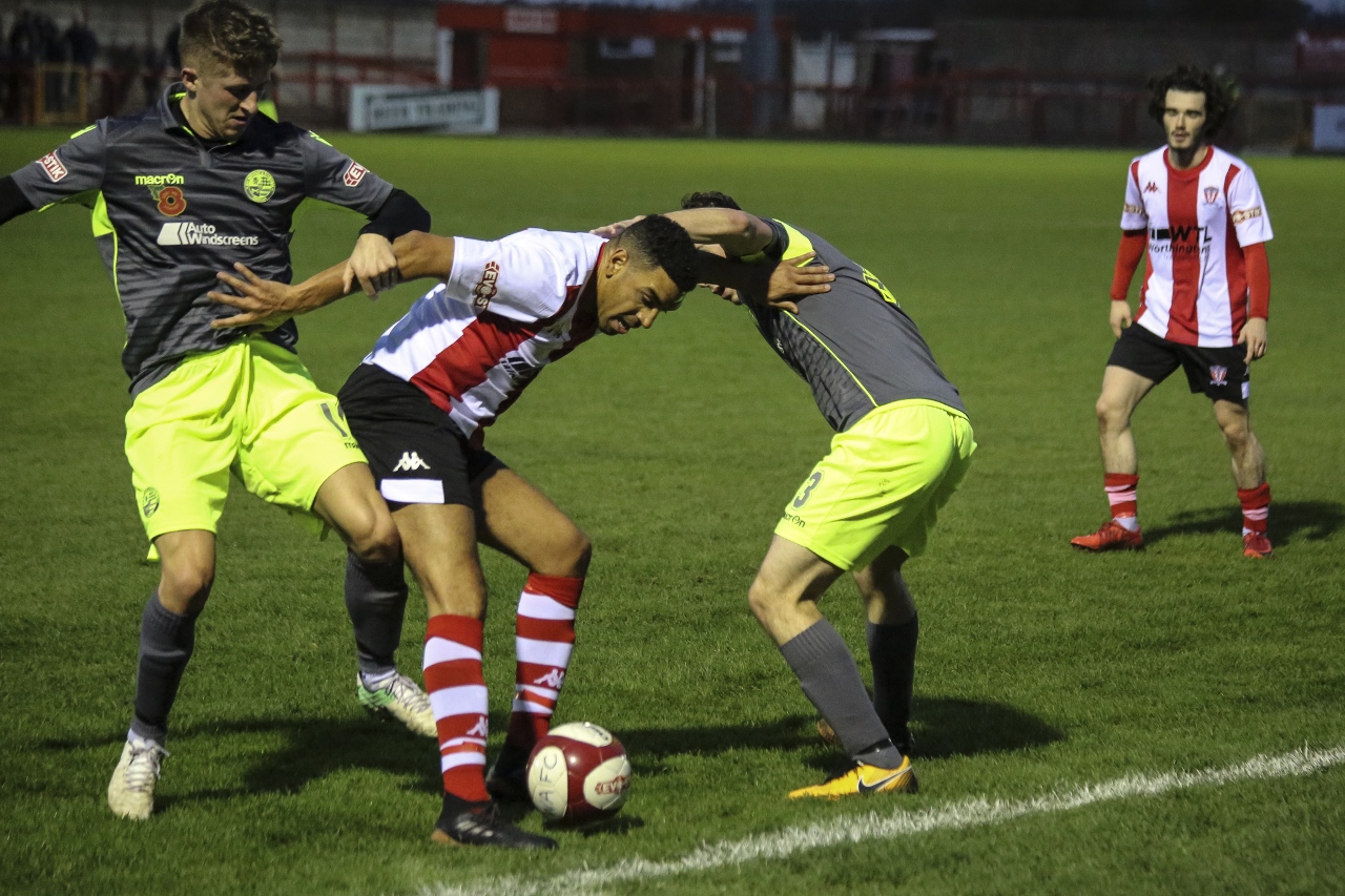 The two sides entered the Wincham Park playing surface with memories abounding of clashes between the teams in the 2016/17 season, in particular the play-off semi-final that had seen Witton emerge 1-0 winners and end up winning promotion. They had a perfect record against Diamonds having played three, won three, scored five goals and conceded none, but in this current campaign they sat 18th in the Northern Premier League Premier Division and had lost four of their last five home games in all competitions. They had had a successful FA Cup run though that had seen them defeat Spennymoor at home and FC United of Manchester away before succumbing to National League side Solihull Moors, and so Rushden knew they were in for a tough test. The visitors entered the clash 11th in the Southern Premier Division Central, and had only lost one of their last seven games in all competitions.