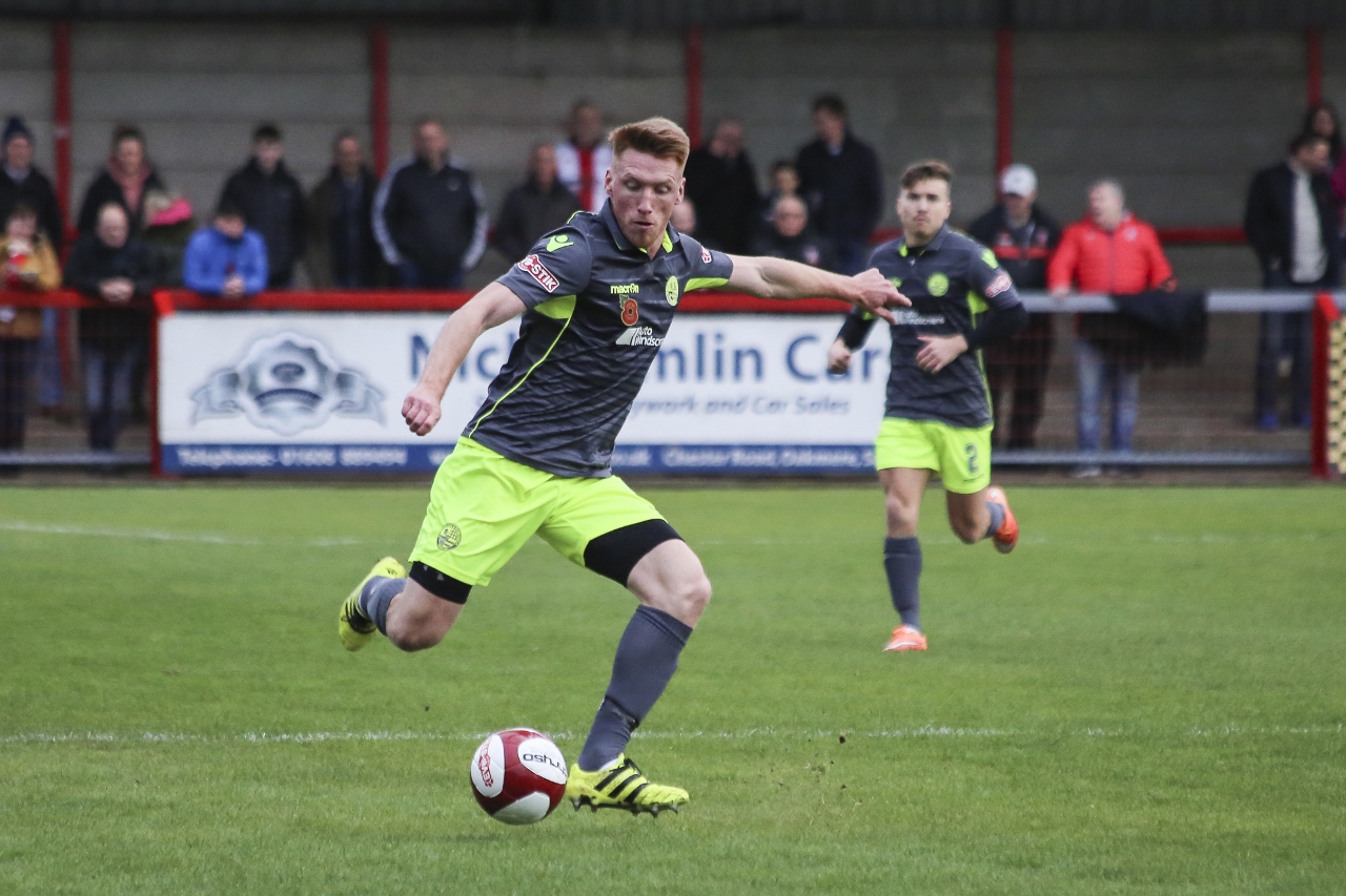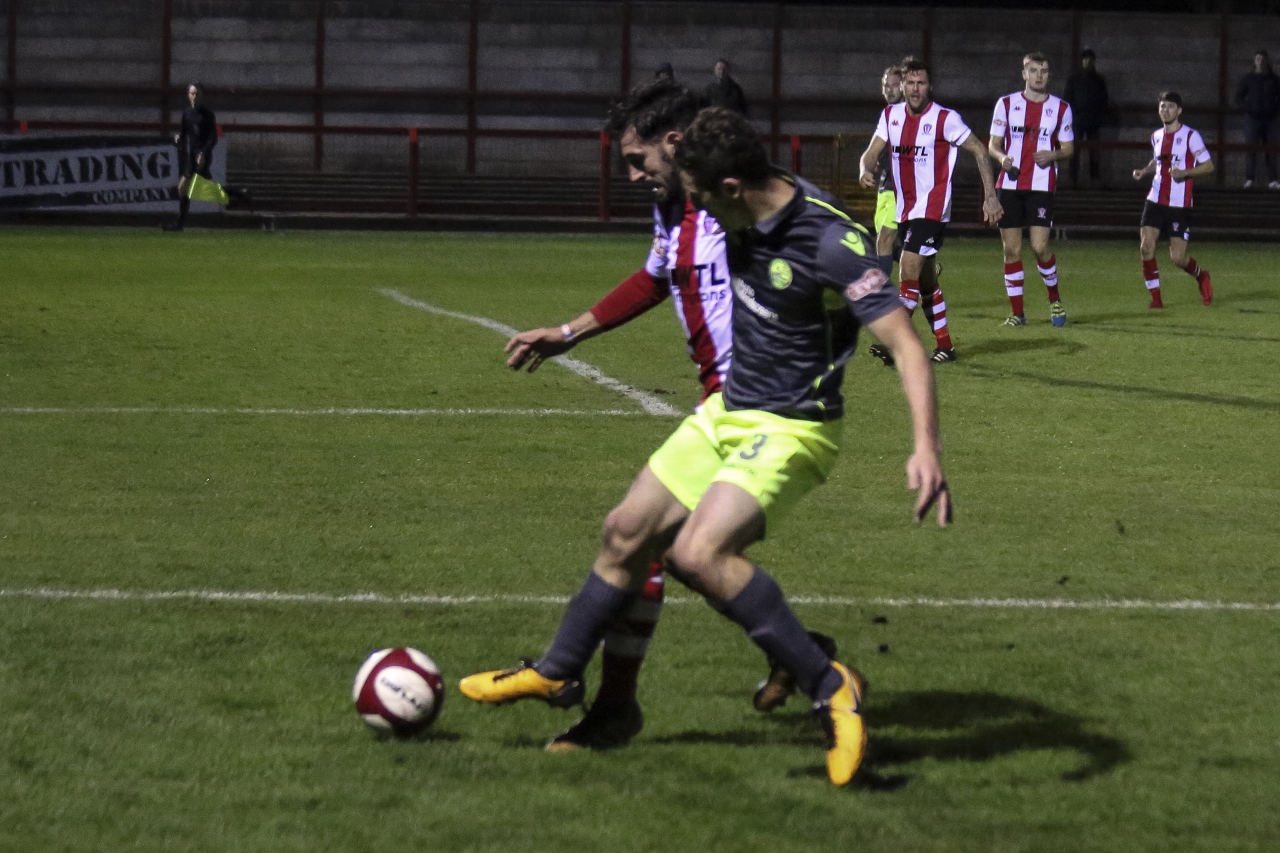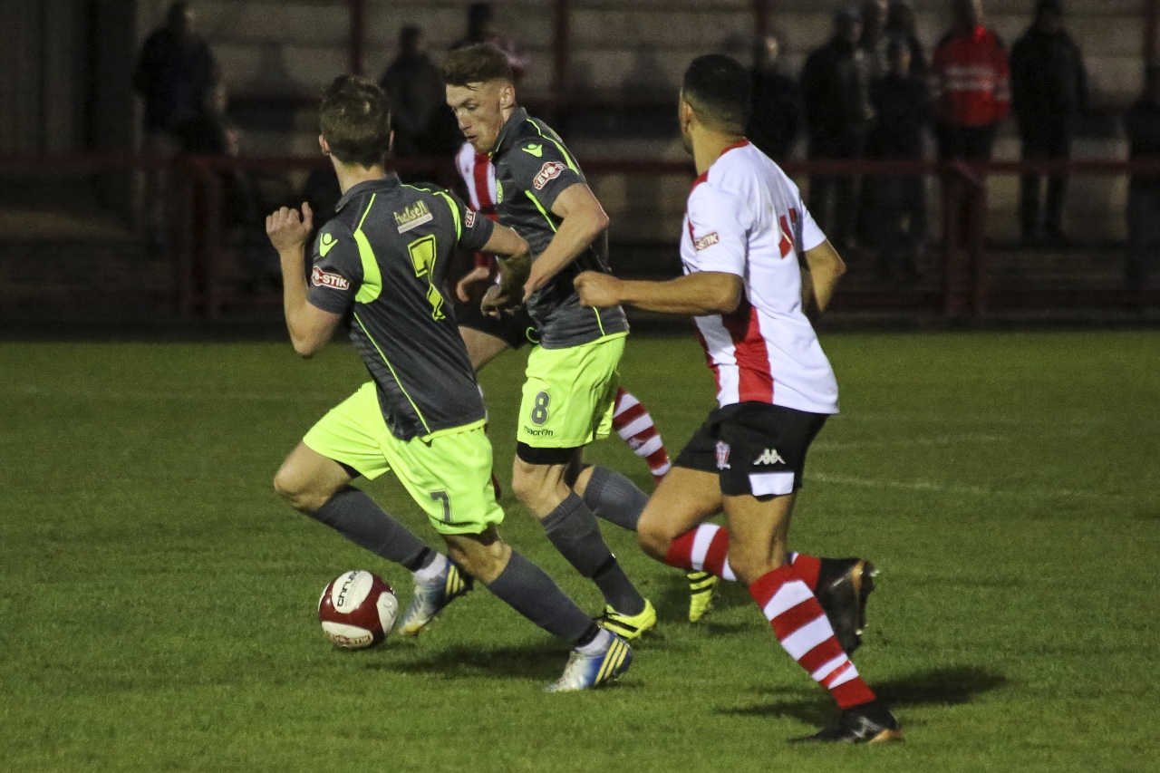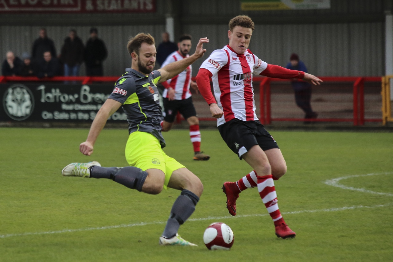 The home side did not have to wait much longer to extend their lead though. In the 70th minute McKenna cut inside from the right flank and curled a dangerous delivery towards the far post. Zack Reynolds, conscious of a Witton man behind him, attempted to clear on the volley, but it came off the outside of his boot and flashed past a helpless Heath into the back of the net.