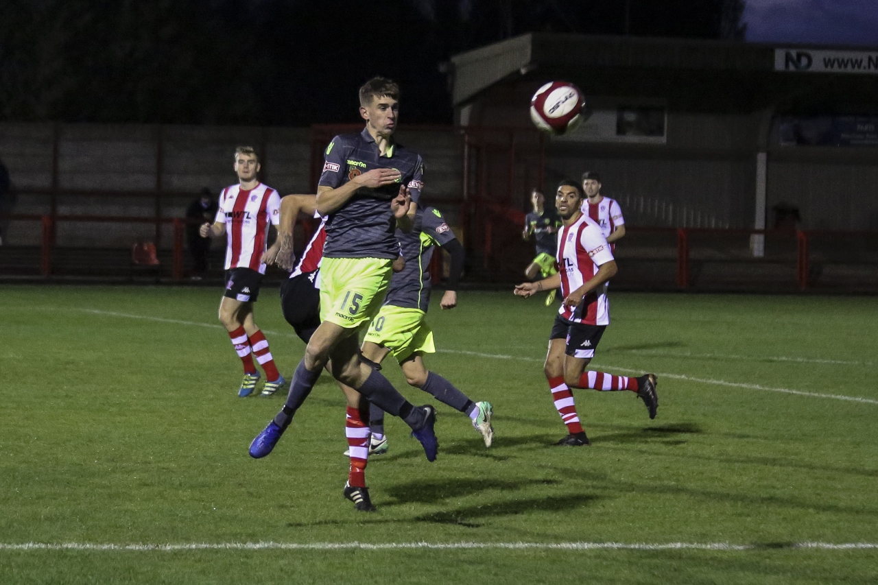 Play had barely restarted when the hosts had a good opportunity to double their advantage. A swift break down the left saw Owens play in Danny McKenna on the left of the area, but Heath did well to stand tall and save the low effort with an outstretched foot. Only a minute later Hicks found room to deliver a cross into the area after good interplay with Sam Brown, but Lorraine’s header looped up and towards goal which was easy for Hall to save and collect. In their next attack Jack Bowen got into the left of the area and fired a cross across goal and, though Hall initially spilled it and Lorraine closed in on the loose ball, the keeper was able to collect at the second attempt.